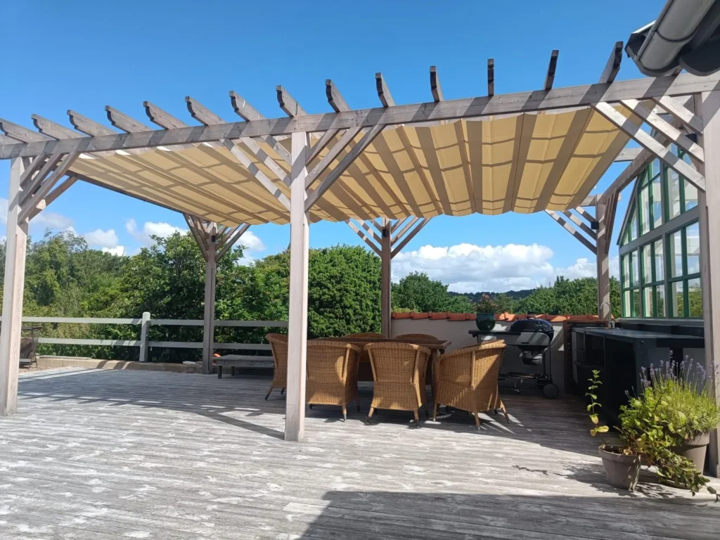 Vår pergolamarkis är konstruerad för att fungera som ett vattentätt tak.