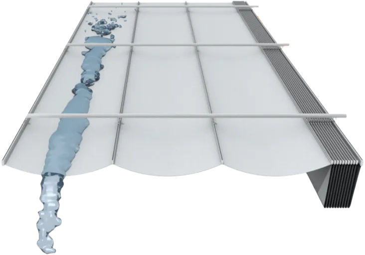 Med ett fall på cirka 2 till 3 procent leds regnvattnet bort kontrollerat, och eftersom takytan saknar sömmar får du ett skydd som känns robust även vid ihållande regn.